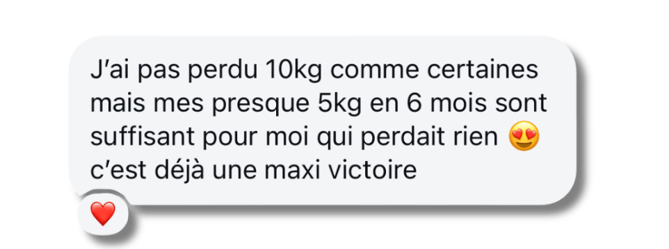 Exemple concret : Sophie a perdu 9 kg en 4 mois, mais plus important encore, elle a retrouvé son énergie et sa confiance sans souffrir. Son objectif n’était pas seulement de perdre du poids, mais de retrouver son équilibre mental et physique.
