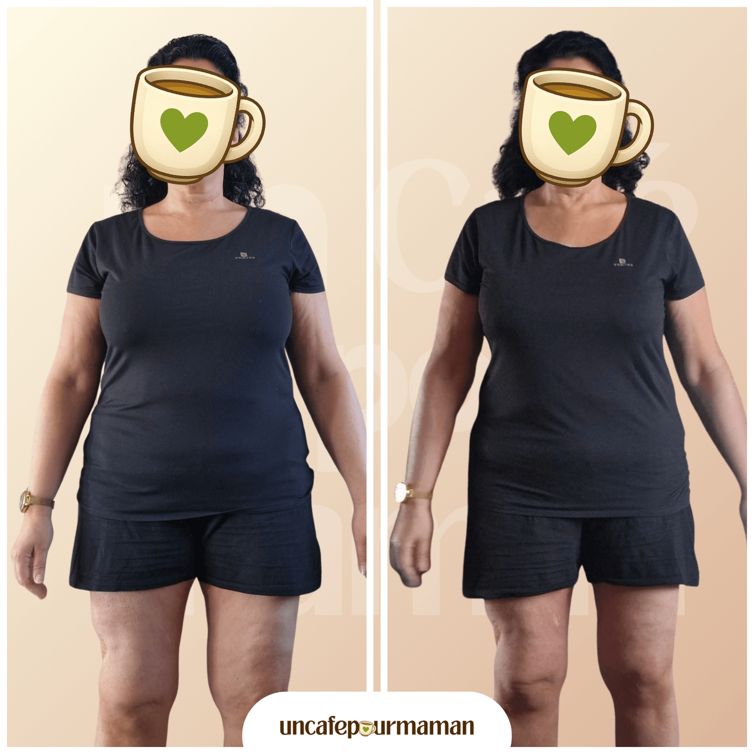 Les photos parlent d'elle même 😊. Mon mari n'en revient pas, il me complimente sur ma perte de poids, 9kgs en tout et je ne compte pas m'arrêter là. Merci à toi 😍