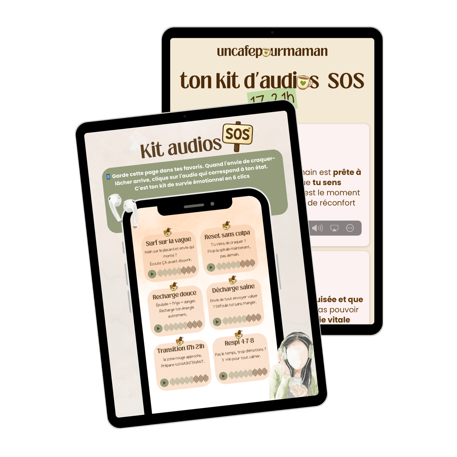 Ton coach d'urgence 24/7 dans la poche : 6 audios pour court-circuiter tes craquages selon ton état → Plus jamais seule, ton nouveau réflexe devient téléphone au lieu du frigo